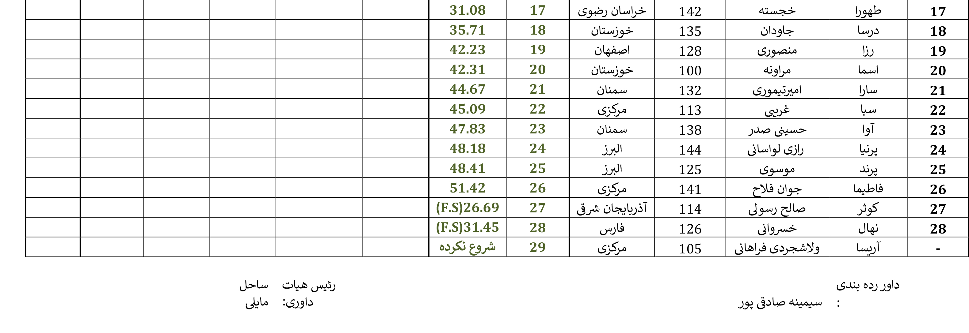 🔹نفرات برتر دختران نوجوانان C - ماده سرعت: