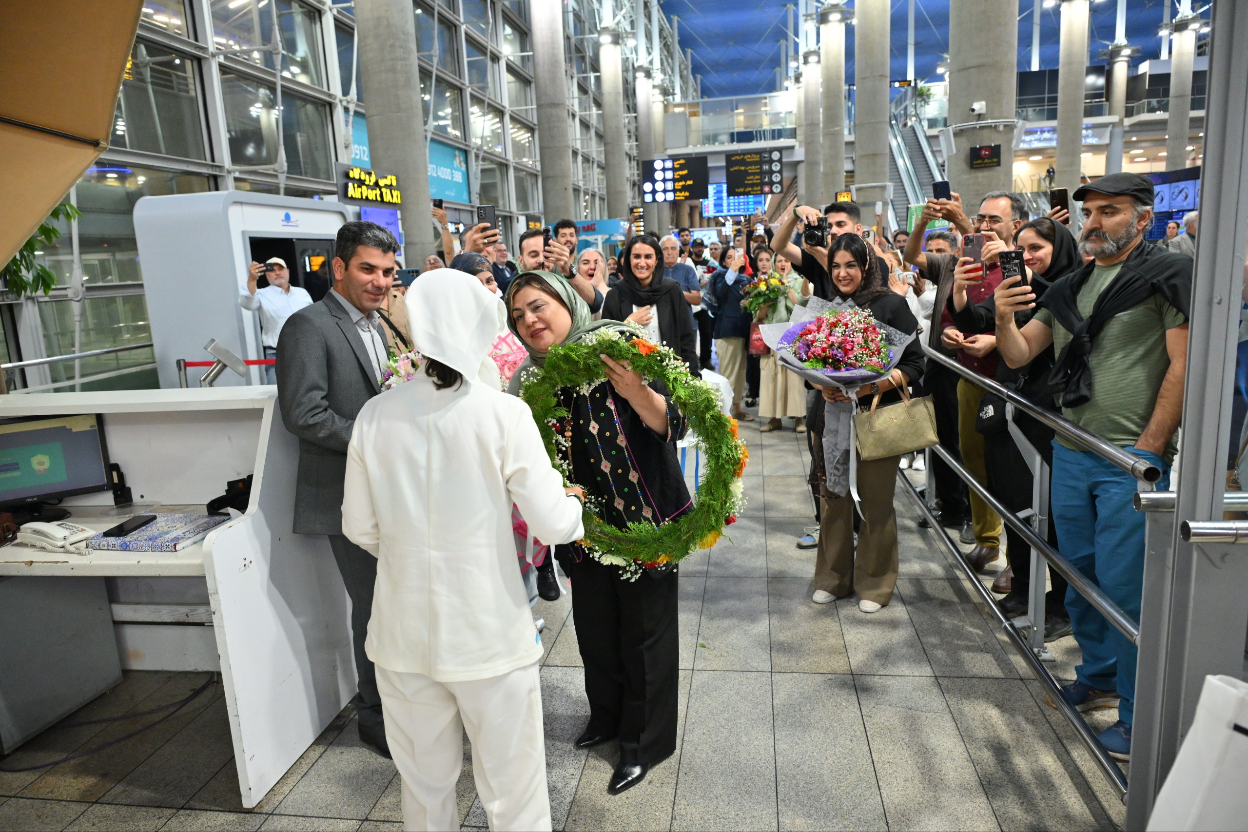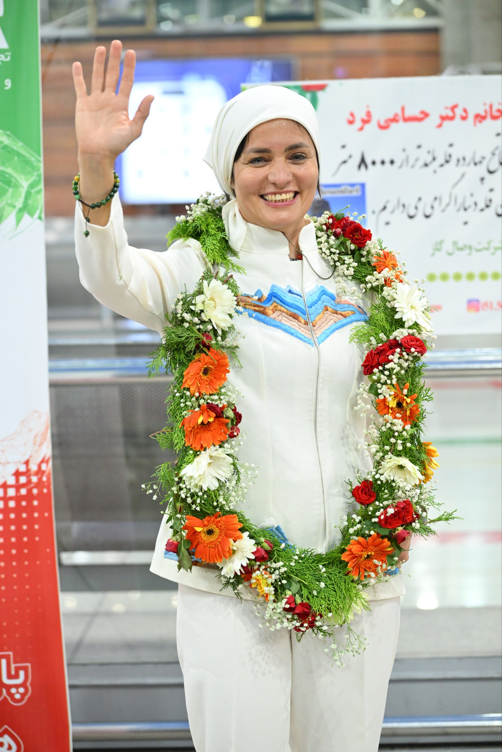 گزارش تصویری / بازگشت «افسانه حسامی فرد» به میهن، پس از صعود به قله «چوآیو» و پیوستن به باشگاه هشتهزارمتریهای جهان / فرودگاه امام / یکشنبه 27 مهر 1404